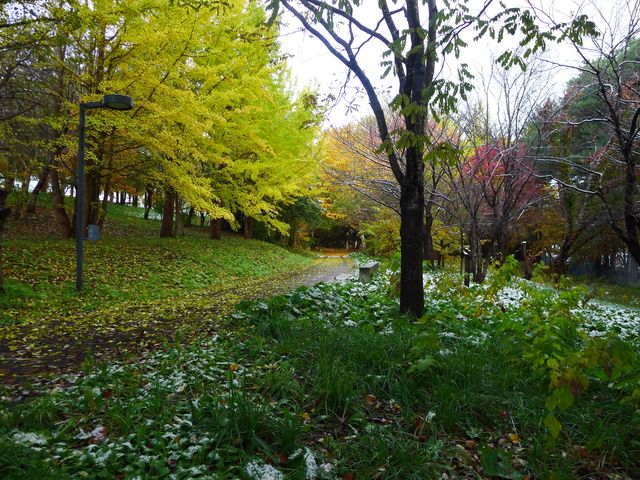 | 11月8日 ドーム 雪の上の紅葉 |