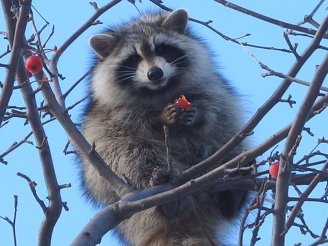 12月19日 ドームで木の実を食べるアライグマ |